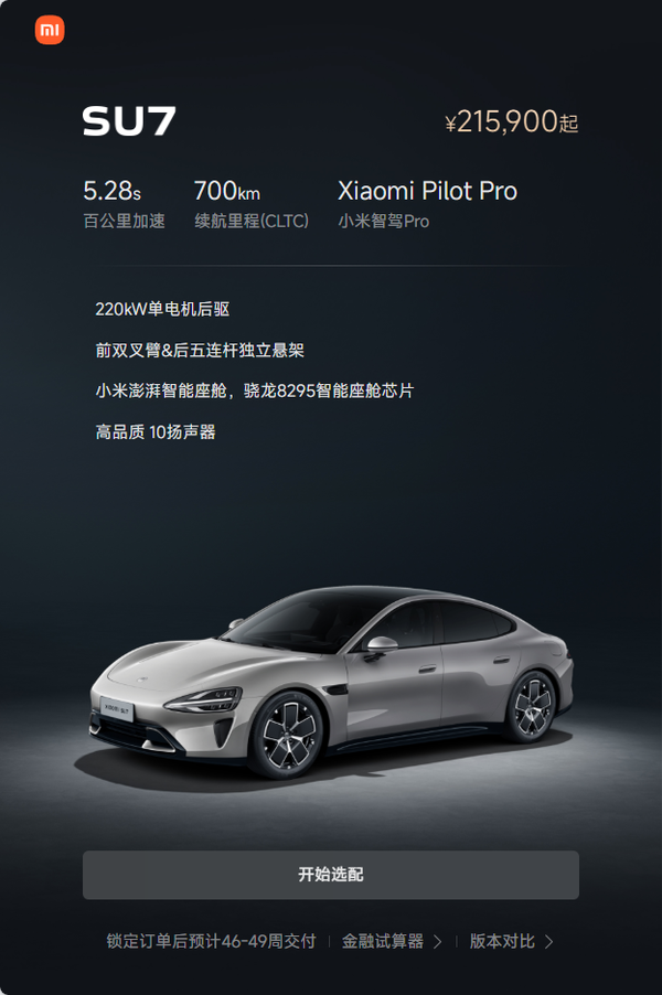 三款小米SU7等车时间已逼近50周 现在下单明年提车?