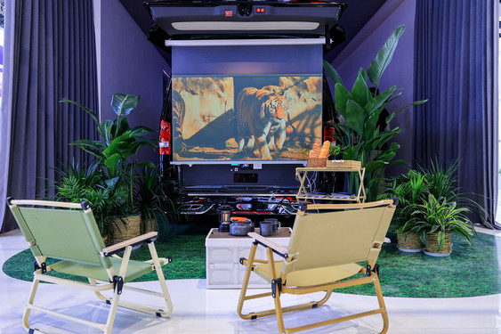 一机多投座舱投影打开了车载巨幕投影体验的想象空间。这台车内投影设备是目前车内多场景视听的完美解决方案。它不仅可以向前投射,打造车内大屏娱乐体验;更能在车尾箱升起时,以背投方式将画面投射到车尾幕布,为露营、观影等户外场景提供极致的视听享受。