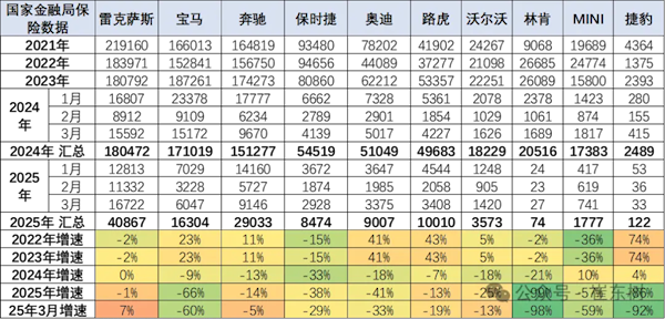 2025年的雷克萨斯的进口零售下滑1%,表现不错。宝马、奥迪、路虎的表现总体较强。