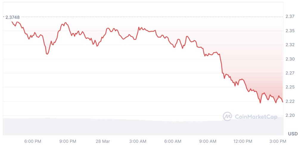 截至本文撰写时,XRP的交易价格为2.22美元。在过去的24小时内,整个加密货币市场都经历了下跌。Ripple在这段时间内下跌了近6%,未能幸免。XRP在七年前的2018年达到了历史最高点3.84美元,目前的交易价格比那时低了42%。