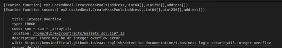 比如我们在 3 月 15 日预警的 Poolz Finance 的 Locked Deal 合约遭到攻击事件里,攻击者调用了 LockedDeal 合约中存在漏洞的函数 CreateMassPools,并且在参数_StartAmount 中触发了整数溢出的漏洞,我们测试了这个漏洞能通过 VaaS 工具检测出来,ChatGPT 却不行。