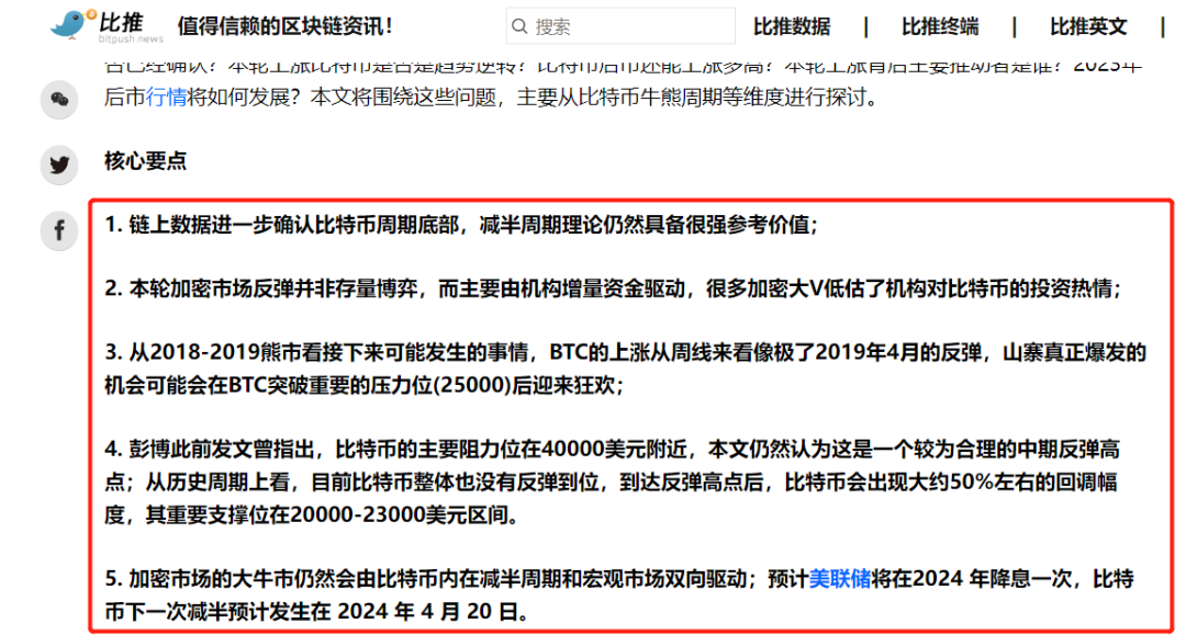 本文认为,此前我们在《周期为鉴,比特币2023年还能涨多高?》一文中的观点目前仍有参考意义价值:本轮加密市场反弹并非存量博弈,而主要由机构增量资金驱动,很多加密大V低估了机构对比特币的投资热情;从2018-2019熊市看接下来可能发生的事情,BTC的上涨从周线来看像极了2019年4月的反弹,山寨真正爆发的机会可能会在BTC突破重要的压力位(25000)后迎来狂欢。