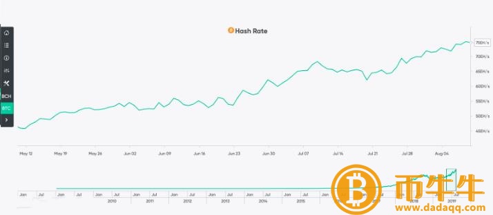 2019年8月11日,比特币哈希值 75-80 EH / s。