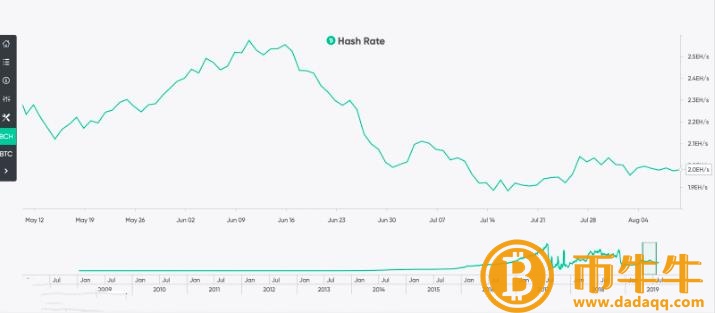 BCH2019年8月11日,哈希值 2 EH / s。