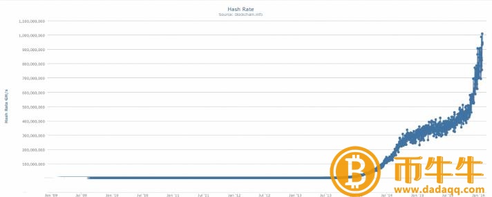 直到2016年1月,BTC网络哈希值每秒达到一次exahash(EH / s)。