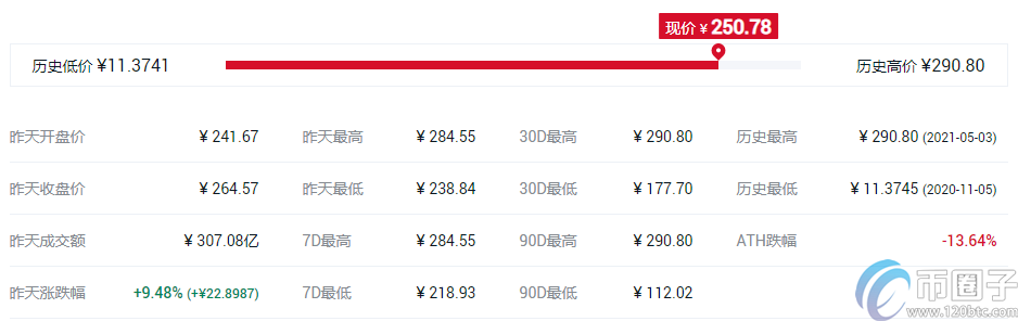 5。YFIYFI流通市值25.51亿美元,流通数量366.35美元,24小时成交额49.33亿美元。
