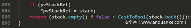 首先堆栈不能是空的,然后栈顶强转bool后必须是true。笔者简单解读为必须要有栈顶而且值不能是0.