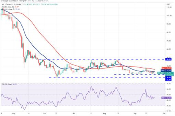 Solana ( SOL ) 从 30 美元的即时支撑位反弹,但多头无法将价格推高至 20 天均线 (33 美元)