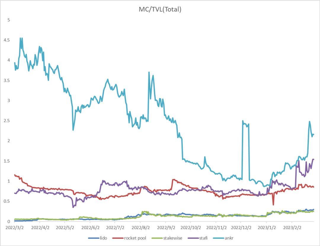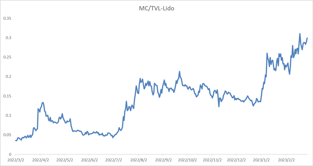 对比分析 MarketCap/TVL,可以看出年后市场对 LSD 赛道的估值明显抬升。以下几点值得注意:
