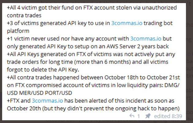 原文:《新型黑客手法:3Commas API KEY 泄露;在 FTX 等对敲盗币 全过程记录》