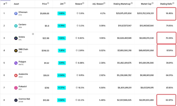 主流公链质押率普遍在60% 的水平,Solana-70%、Bnb-90%,2020年12月ETH信标链发布并开启POS质押存款,经过21年全年验证节点的“同舟共济”,才将质押率提升至不到15%,因此验证节点和质押率的提升并不是一蹴而就,需要市场和矿工之间的博弈。