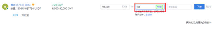 PS:这里需要注意下 限额,即本次出售,最低到最高所值得人民币,超过或者低于是无法卖给广告方的,根据自己有多少USDT来计算下。