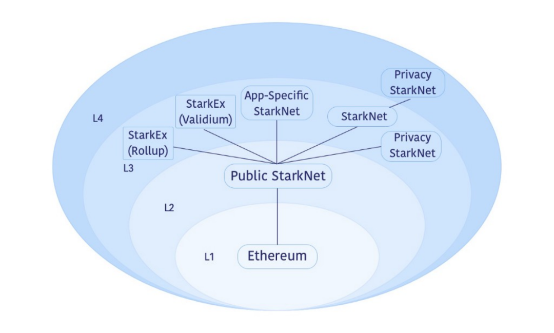 Layer3 如同 Layer2 嵌套在 Layer1上,它和 Layer2 之间也有着嵌套、递归的关系。通过递归证明的乘法效应,实现强大的可扩展性,同时这种扩容是呈几何级增长的,应用程序的设计者也能够更好地控制相关技术堆栈。通过自定义数据模型,加快区块链的技术周转率和功能运作效率。