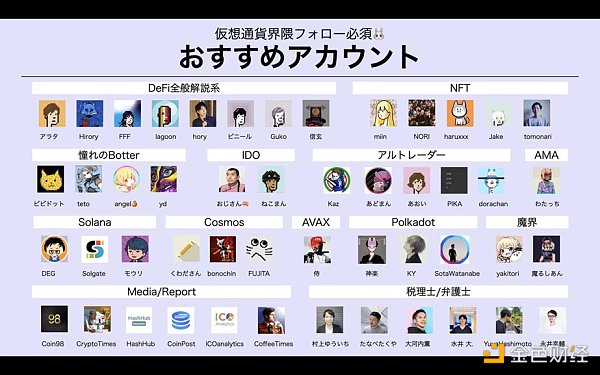 * 推特上有一些自媒体通过收集日本国内和海外的区块链相关的信息并将其翻译为日语,当然也有很多垂直媒体也会在推特上创建账号来提升存在感。比较出名的有dAppsMarket、CRYPTO TIMES、BlockchainGame Info以及NFT JPN。此外,CoinGecko Japan也不可小觑。
