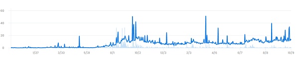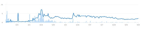 Chromie Squiggle 总量 10000 张,铸造价格 0.035 ETH,发行后有几个月时间都在较低位置徘徊,一直到了平台引入了顶级艺术家获得了极高的市场关注后,2021 年 6 月地板价才真正突破开始大幅度上涨,目前地板价 11 ETH,挂单率仅为 2%。2021 年 9 月,Chromie Squiggle #4697 以 945 ETH 的价格成交,创造了此作品中的最高价。