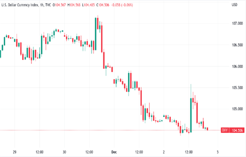 12月2日反弹至105.6几乎完全逆转,DXY收于104.5。