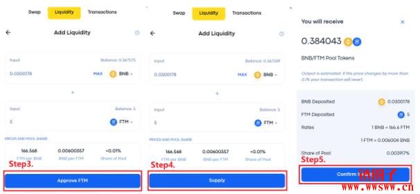 如果向BSC提及FTM币,即币安智能链条上的去中心化交易所biswap也可以参与流动性挖掘,其收益会高于币安交易所。目前挖矿收入30%左右,交易费收入4%左右。那么我们如何赚取这些利润呢?