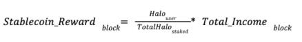 任何 HALO 代币持有者,将能够参与 HaloDAO 平台议案进行的抵押行动及投票表决。所获得的稳定币奖励将通过以下方式来计算:他们抵押在投票议案的 HALO 比例,乘以 HaloDAO 在特定时间段内获得的总收入。主动进行 HALO 抵押及投票的用户,将根据其在所抵押及投票的HALO 数额,在全部用户抵押的总量所占比例,而得到奖励回报。