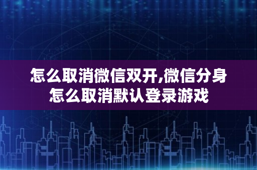 怎么取消微信双开,微信分身怎么取消默认登录游戏