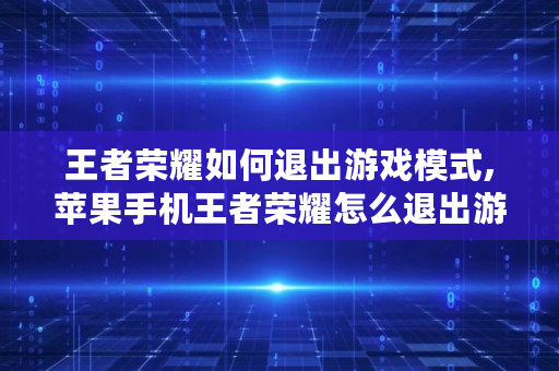 王者荣耀如何退出游戏模式,苹果手机王者荣耀怎么退出游戏