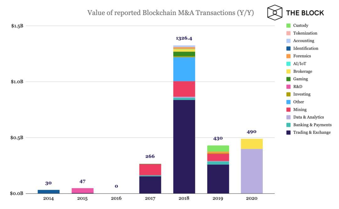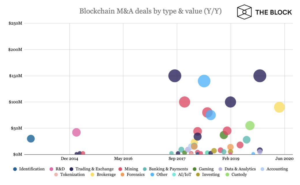 近年来区块链不同领域的并购规模