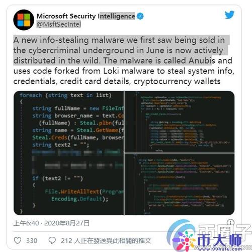 微软安全情报中心(Microsoft Security Intelligence)早前发表推特贴文警告称,近期有个名为「Anubis」的恶意木马程式已在网路上传播开来,用于窃取Windows用户的密码、信用卡以及加密货币钱包资料。