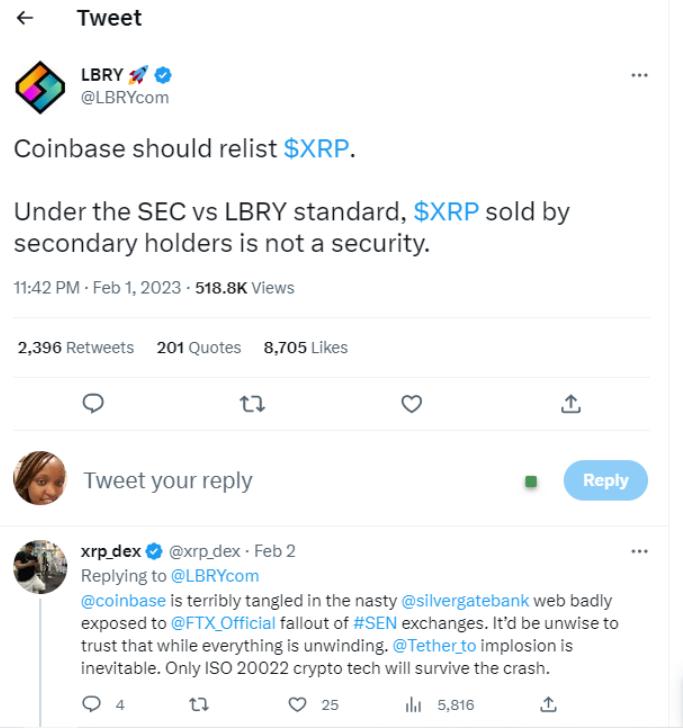 加密社群很快比对SEC对Coinbase的威胁与其针对Ripple Labs的相似处。当时,SEC起诉Ripple Labs时,Coinbase迅速将瑞波币下架。现在,瑞波币的支持者要求Coinbase与他们站在一起,反对SEC并重新上架瑞波币。