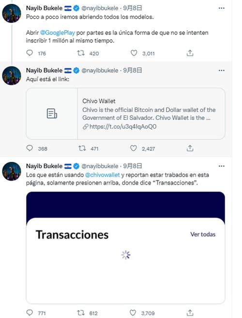 面对比特币钱包运作持续出现问题,Nayib Bukele承认设定的挑战太高,我们犯了错误,但我们已经在纠正它们,成千上万的萨尔瓦多人已经可以使用他们的chivo没问题。