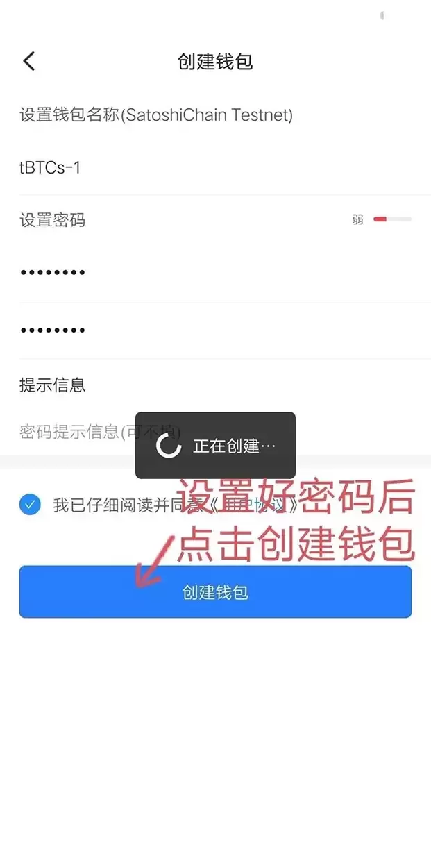 输入相关信息后,再点击创建钱包