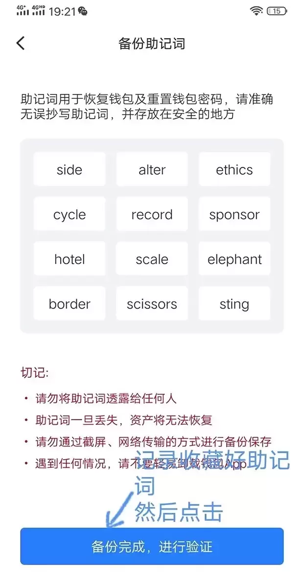 填写完助记词后点击确认