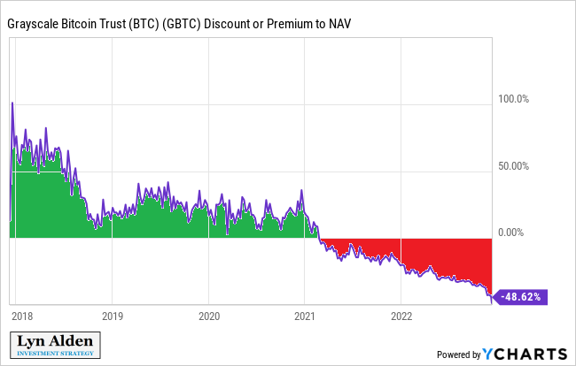 这种做法持续了很长一段时间,直到在各种其他受监管的工具中获得比特币敞口变得更容易。在那个时候,信托不再有理由拥有高于 NAV 的溢价。