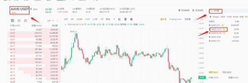 5、在右侧搜索框输入币种简称AAVE,选择AAVE/USDT交易对,即可查看AAVE行情