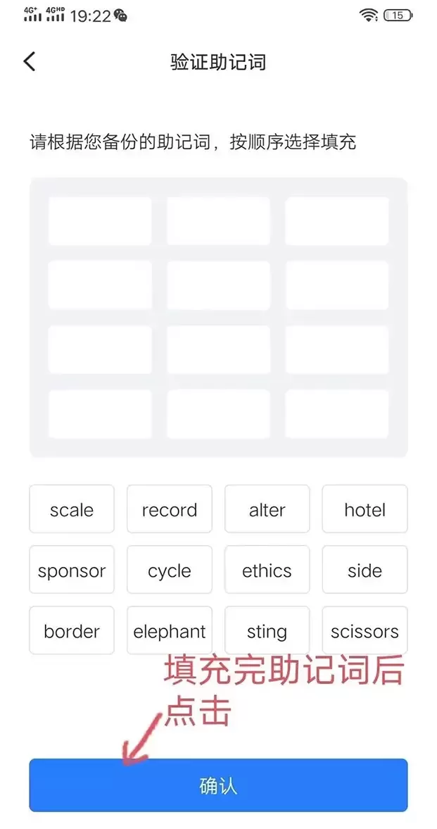 填写完助记词后点击确认