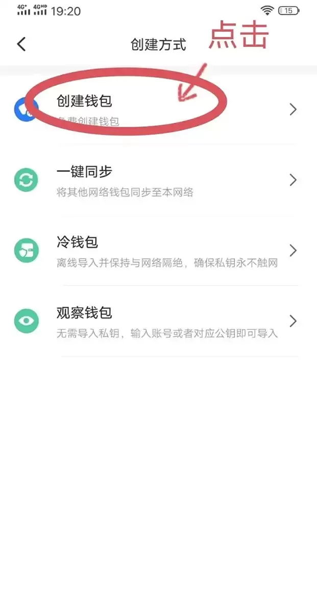 点击创建钱包