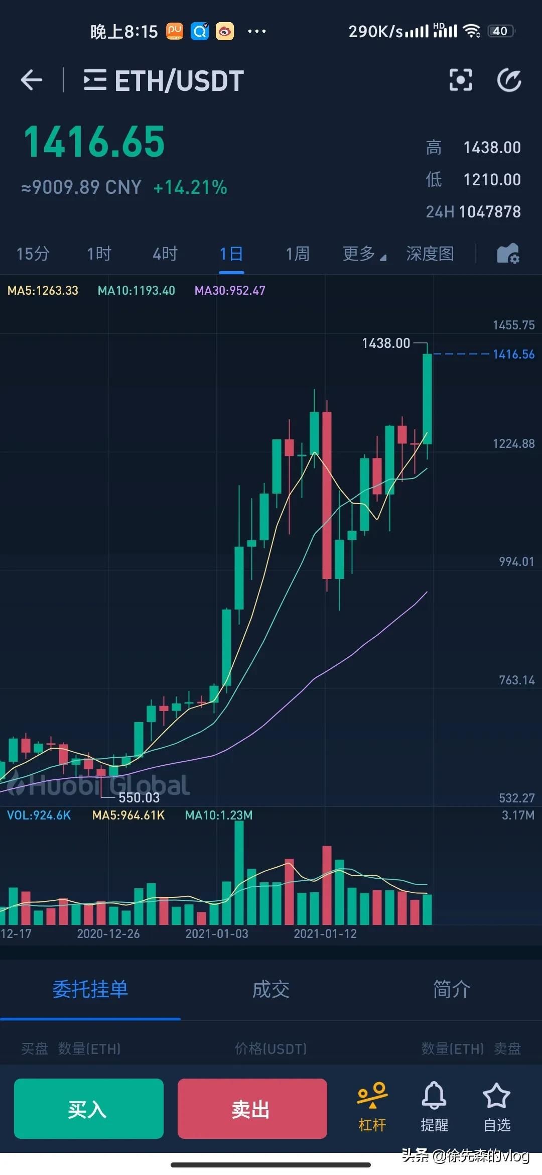 每次比特币大涨,必然会拉一波以太坊,这次比特币热度太高了,炒的太猛了,很多投资者把目光转向以太坊,以太坊在1月11号大跌了25%后又经过几天的调整,今天又是一个大涨突破新高,马上美国总统上任,大规模印钞,比特币和以太坊会继续大涨,现在全球的金融都处在牛市中