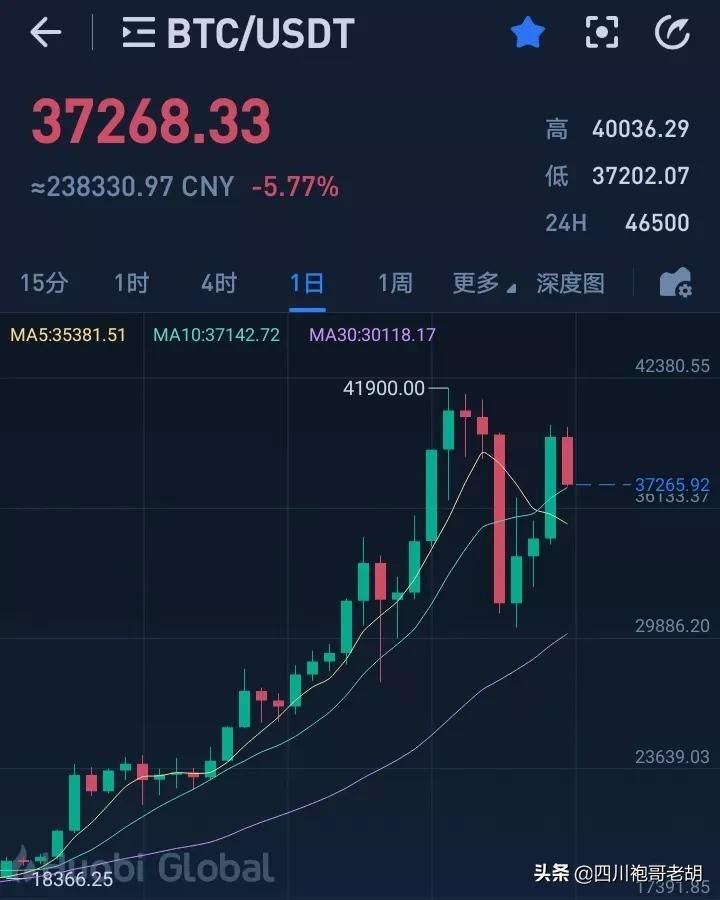 但是从今天以太坊的强势补涨行情来看,还是受到了比特币回调的影响,目前来看比特币已经进入到了关键的方向选择周期上。三角末端的选择行情可能还需要一周到两周的时间,但是切换到日线级别来看如果后续进一步的破位3.5万美元,那么很可能形成周线级别的回调,补下方的缺口26000美元,这对于以太坊后边的行情来讲会有大的影响性。