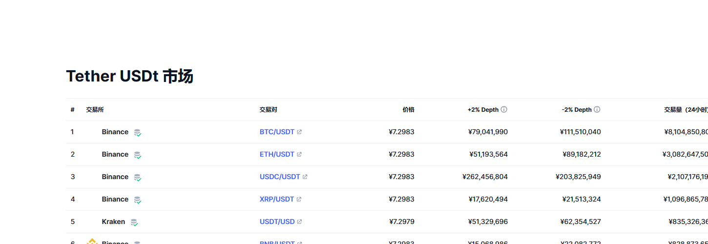 今日1个泰达币(USDT)兑换多少人民币RMB?
