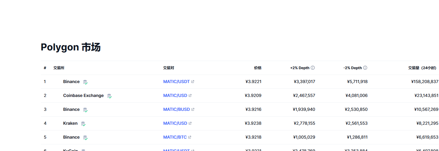 Polygon币(MATIC币)各个交易所价格