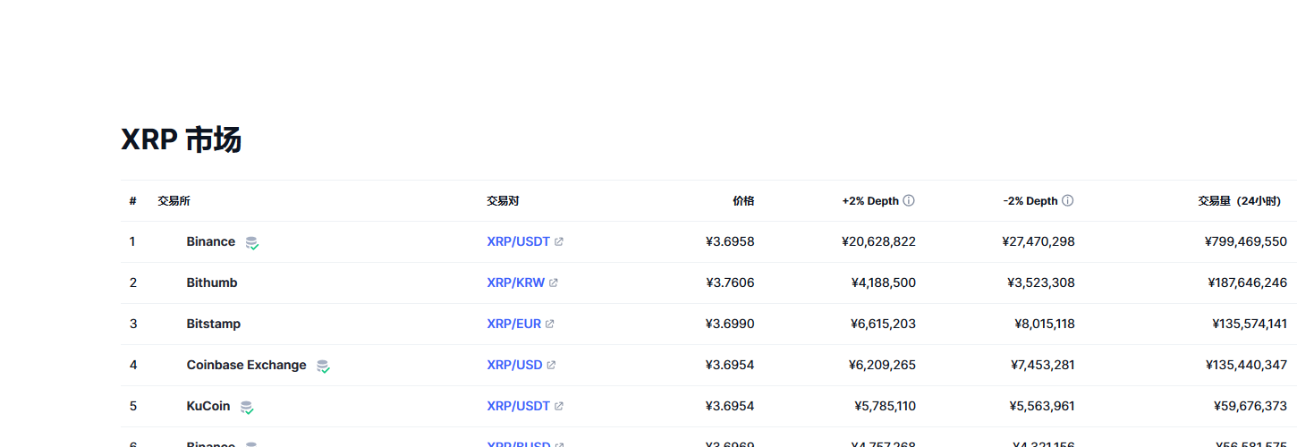 瑞波币(xrp币)各个交易所价格