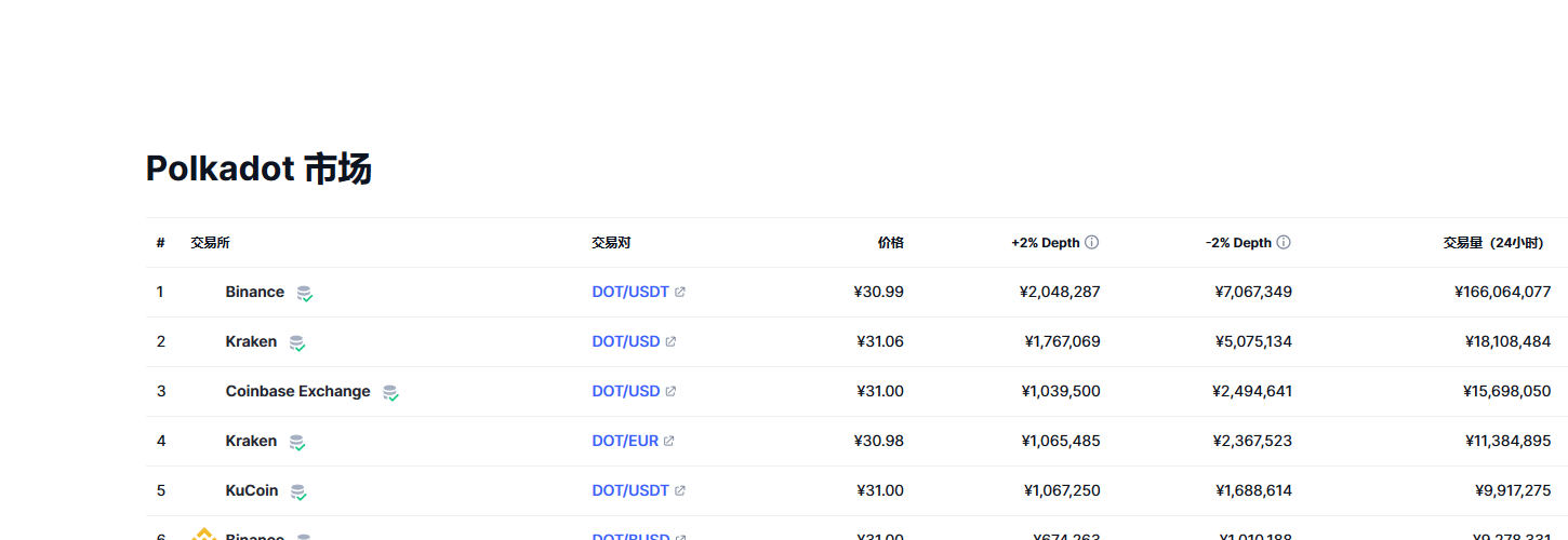波卡币(dot币)各个交易所价格