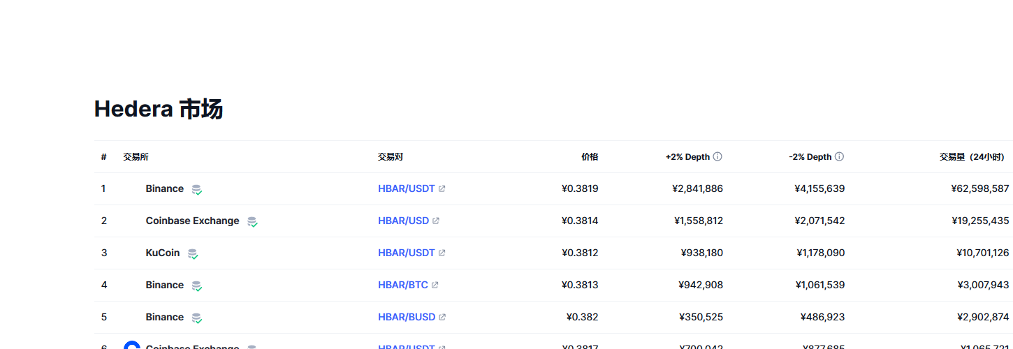 Hedera(Hbar币)各个交易所价格