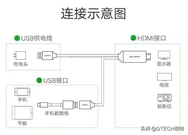 3. 使用手机数据线连接投屏线以及手机,就能连接完成。