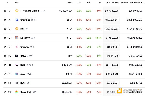 过去24小时去中心化交易所的交易量 数据来源:coingecko