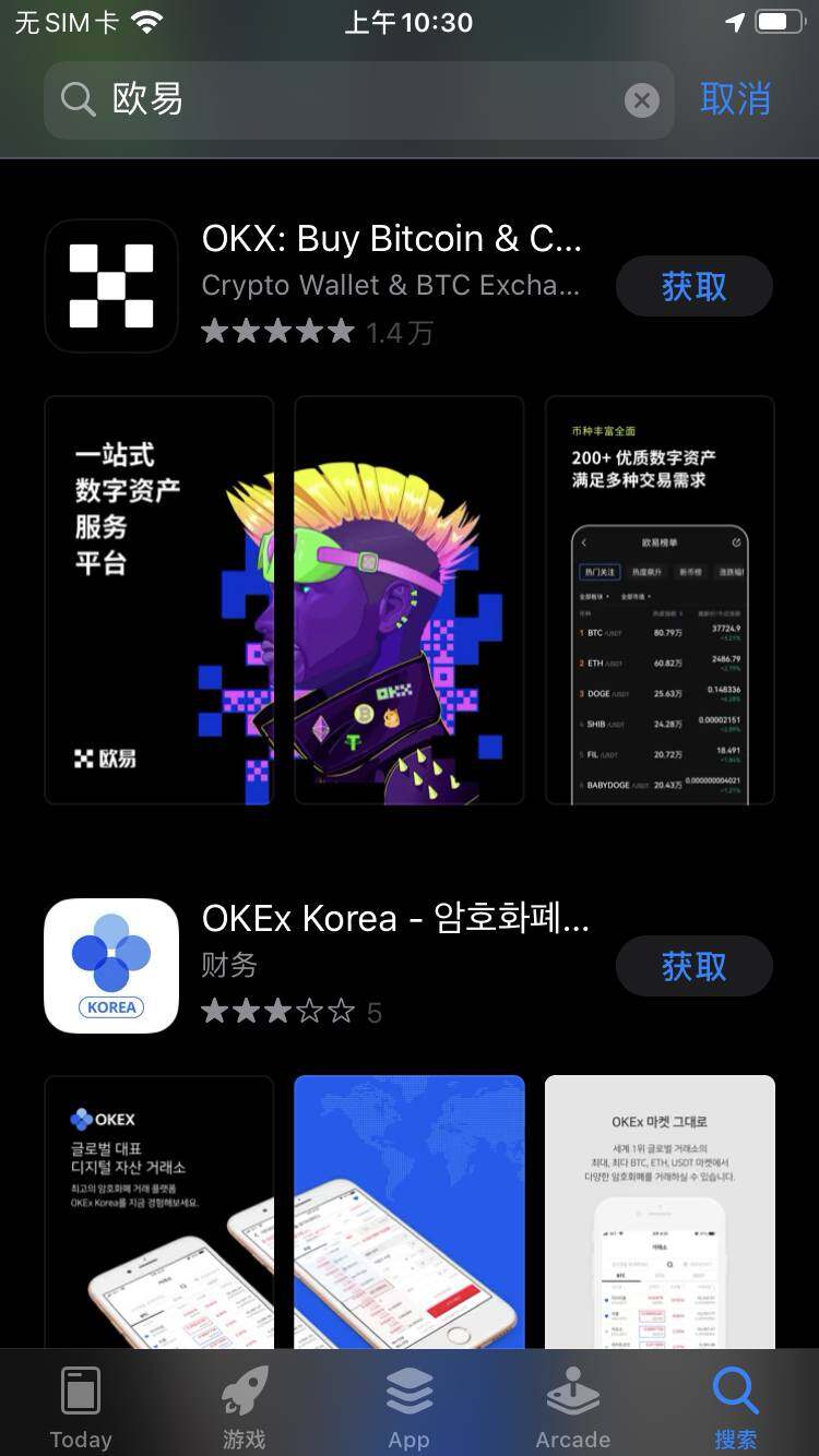 4、这个时候就可以去AppStore搜索框里面搜索“欧意”、“okex”或者“okx”,这些关键词都可以搜索出来。