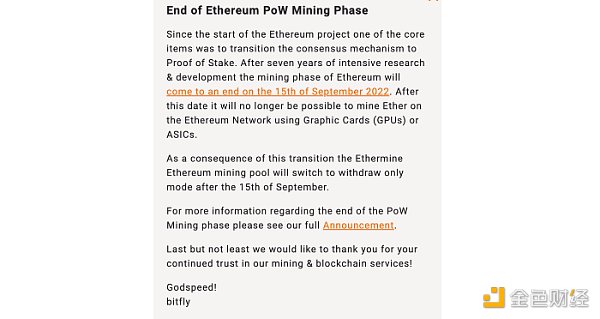 51% 算力攻击是针对区块链网络的潜在攻击,当系统中恶意的单个实体或组织能够控制大部分,即全网超过51%的算力时,由于PoW算法中的共识由算力决定,这使得攻击者可以利用算力篡改账本,导致系统遭受恶意攻击。而在以太坊合并之后,无法再通过挖矿获取收益的矿工会关闭矿机,这导致基于 PoW 的 ETH 分叉可能会丢失部分算力,比如目前最大的矿池 Ethermine 已发布公告,将停止支持 ETH PoW 挖矿。