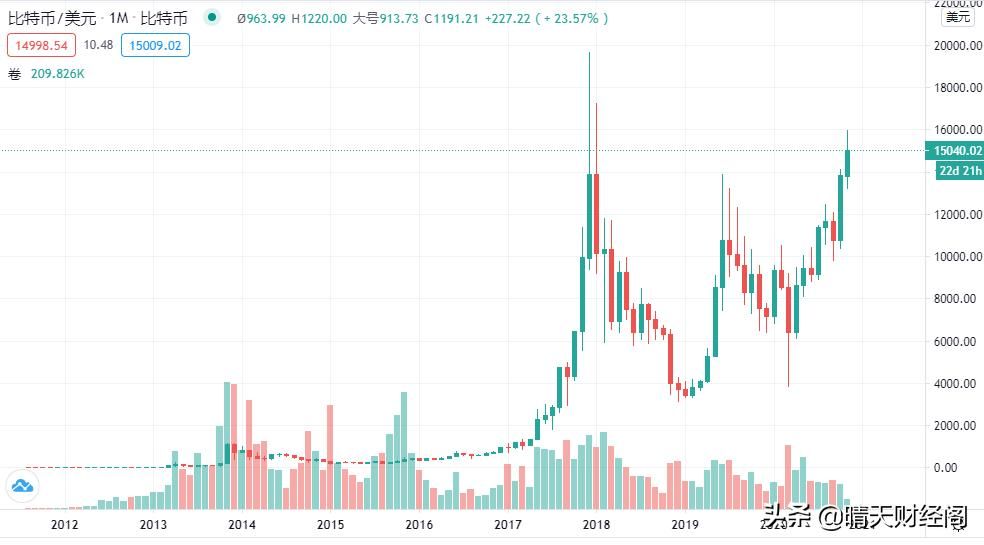 短期内来看比特币涨不了多少了,因为它的上涨动力已经被卸掉了。从2020年比特币下跌到3800美元,再到最近这段时间刚刚突破16,000美元来看,我们能够发现比特币与黄金,甚至与美股之间包括美元的汇率指数之间,都存在着很强大的关联性。其实有一点媒体说的很清楚,比特币的这波上涨基本上都是由机构入金带来的。