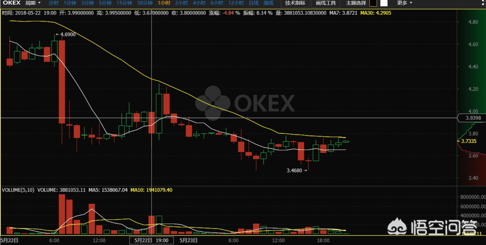 目前平台币比较靠谱的是交易量最大的三大交易所发的币,币安的BNB,OKEx的OKB,和火币的HT,这些币都比较有保障,毕竟交易所不是这么容易就倒闭的,但是平台币的一个最大缺陷是,自己坐庄控制币价的嫌疑很大,而且交易所服务器上出现问题肯定是暴跌,像昨天OKEx出现交易漏洞,系统维护了一天才恢复充提,这期间OKB的行情怎么样,我们看张图。