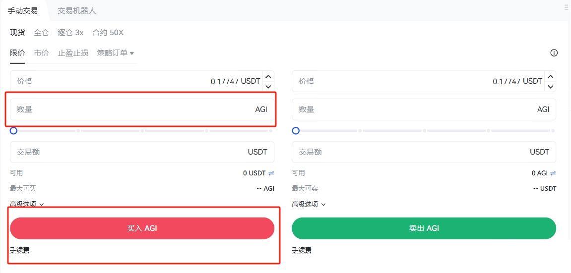 7、输入买入AGI币的数量,点击买入AGI币,就完成购买操作
