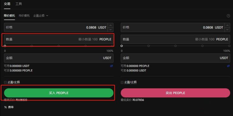 12、输入买入PEOPLE数量,点击买入PEOPLE就可以了