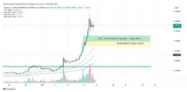 从技术角度来看,狗狗币的直接关注区域位于 0.30 美元至 0.326 美元(绿框)之间,其中 1 日图表上已形成公允价值缺口 (FVG)。